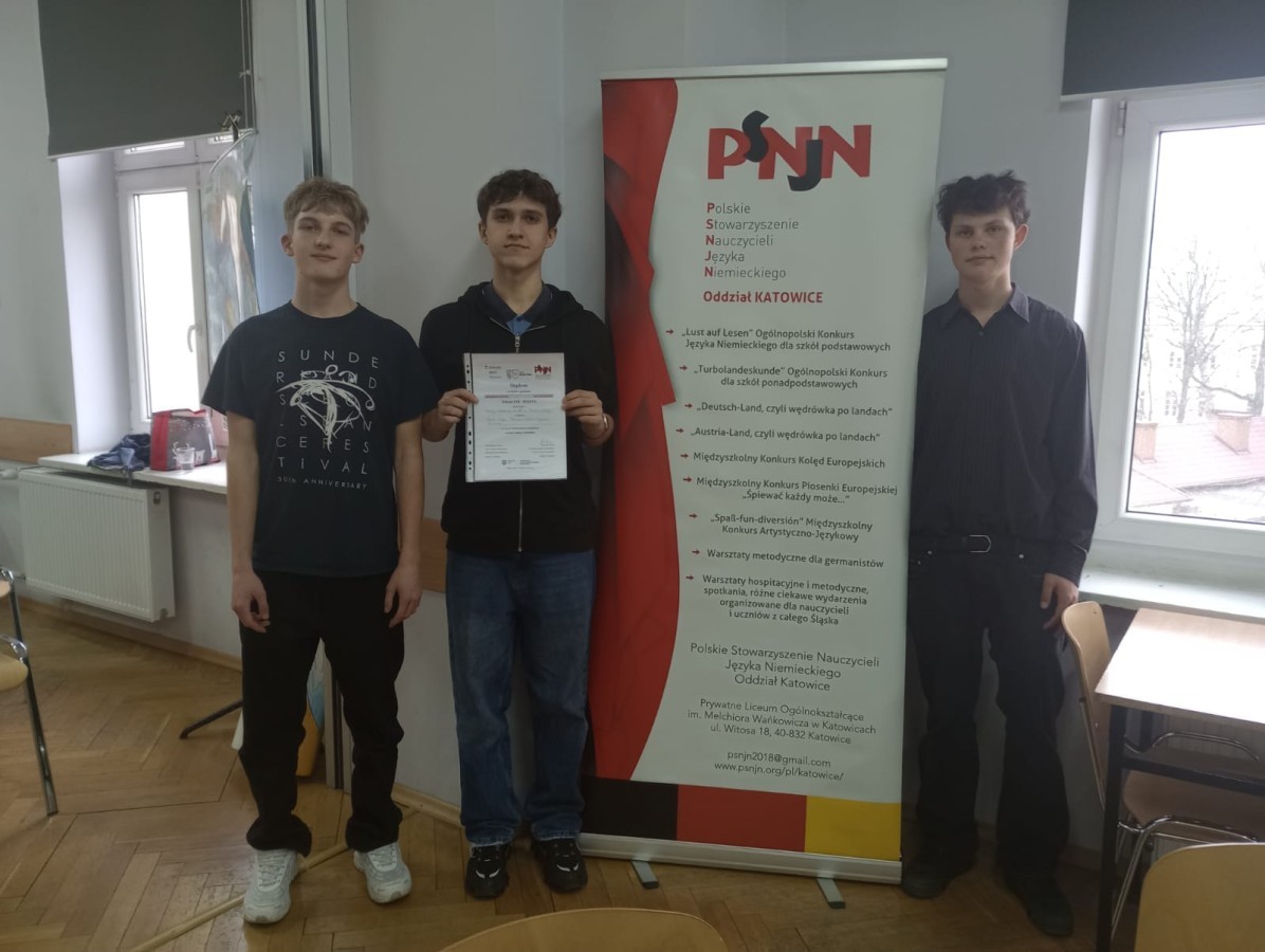 Drużyna z klasy 8b w składzie: Krzysztof Bestwina, Marcel Bigaj i Bartosz Duśko zajęła I miejsce, a tym samym zakwalifikowała się do ścisłego finału.