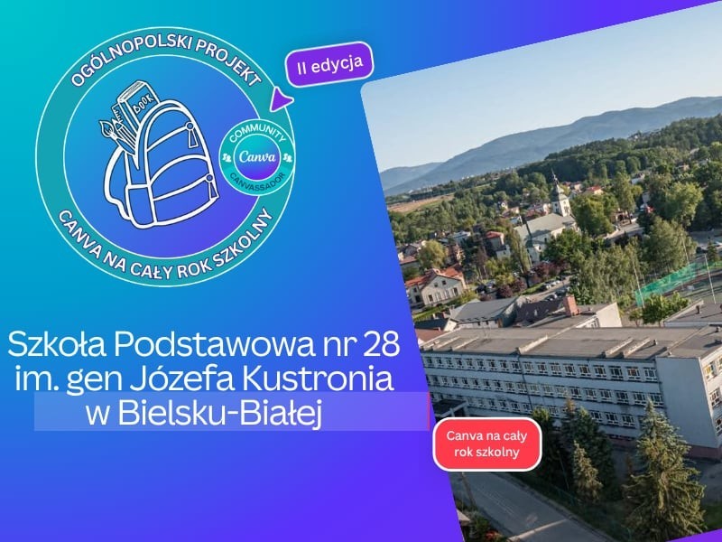 Szkoła Podstawowa nr 28 im. gen. Józefa Kustronia w Bielsku-Białej w projekcie Canva na cały rok szkolny!
