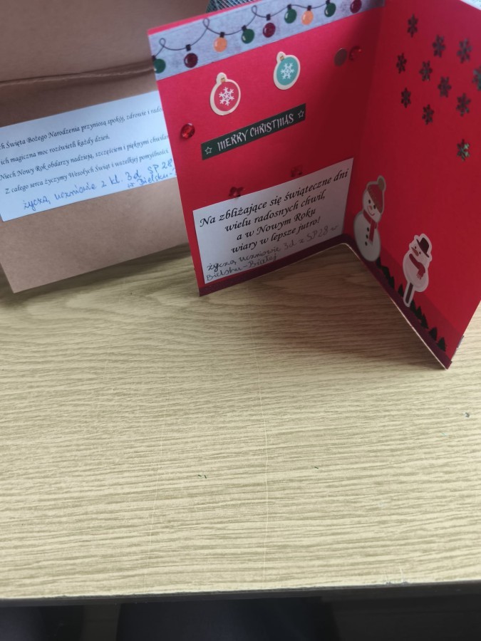 Klasy 3b i 3d, realizując dotychczas trzy zadania projektowe, aktywnie uczestniczyła w działaniach artystycznych i społecznych. W ramach zadania „Sny Andersena” uczniowie wykonali ilustracje do baśni Hansa Christiana Andersena, rozwijając wyobraźnię, kreatywność oraz wrażliwość estetyczną. Zadanie „Sztuka dobra” polegało na przygotowaniu kartek z życzeniami, które zostały przekazane Seniorom oraz Żołnierzom, co pozwoliło dzieciom doświadczyć wartości takich jak empatia, dobroczynność i solidarność. Z kolei realizacja zadania „Lubimy teatr”, czyli wyjście do Teatru Banialuka na spektakl „Chłopiec i Świat”, umożliwiła uczniom bezpośredni kontakt ze sztuką teatralną oraz refleksję nad jej przesłaniem.