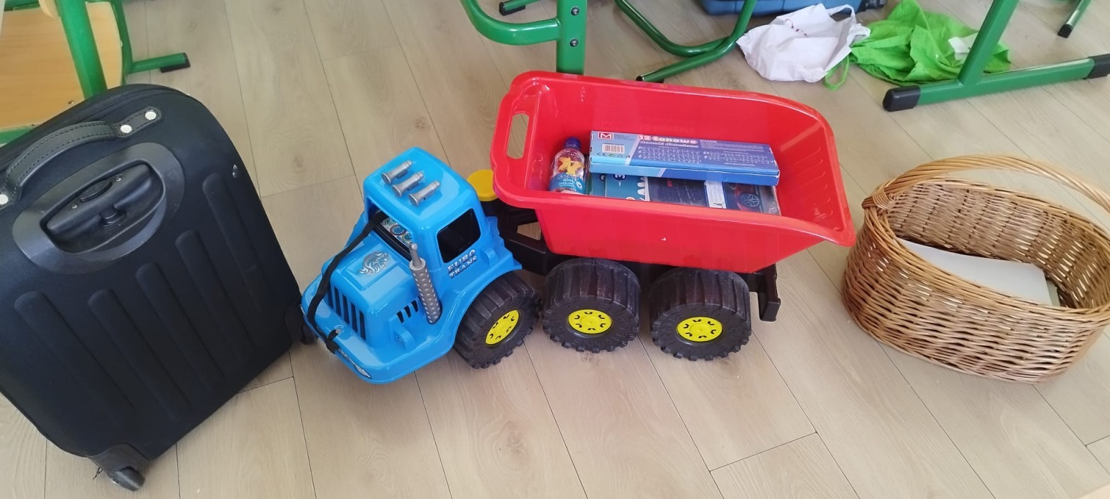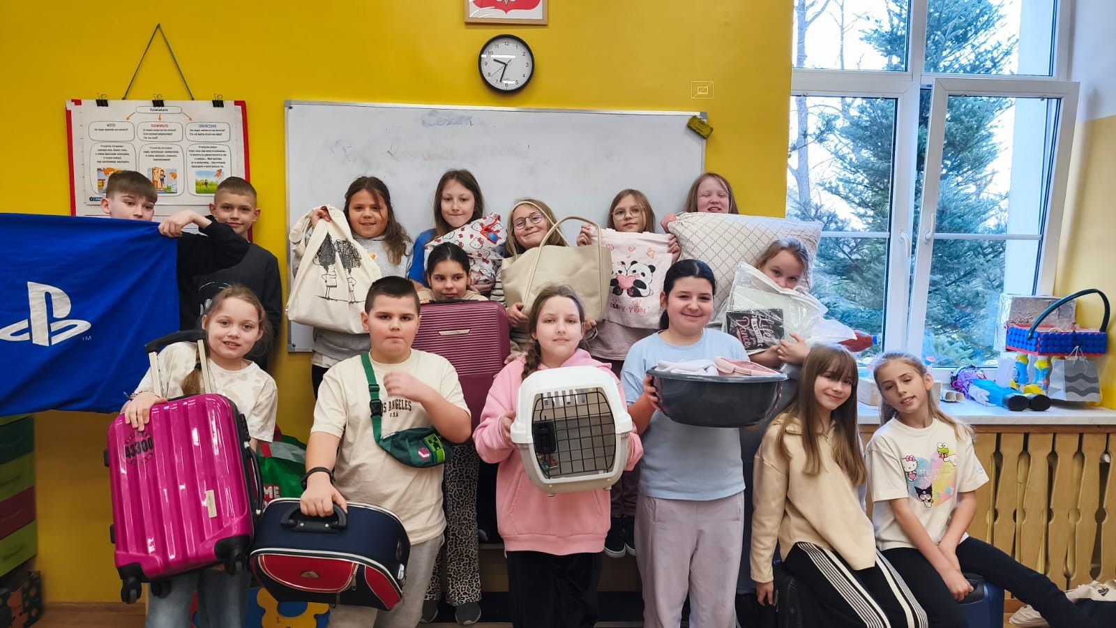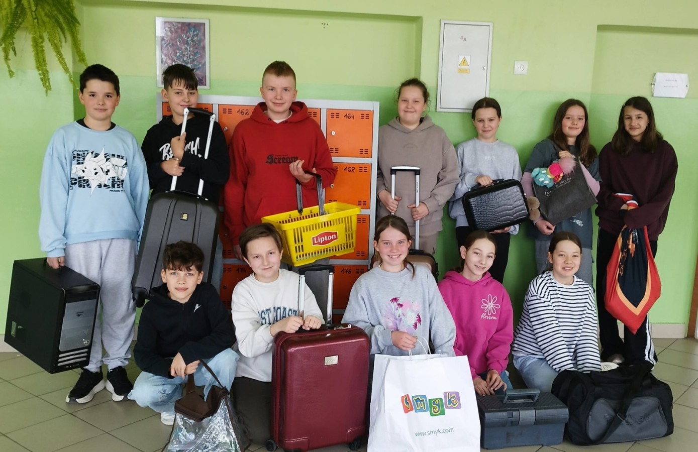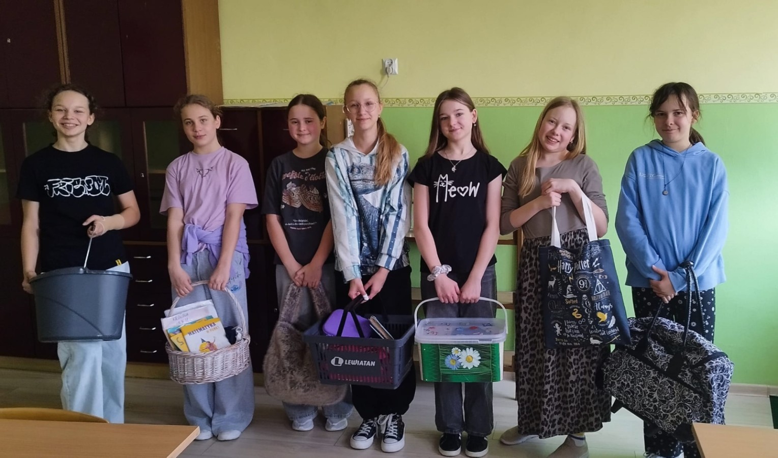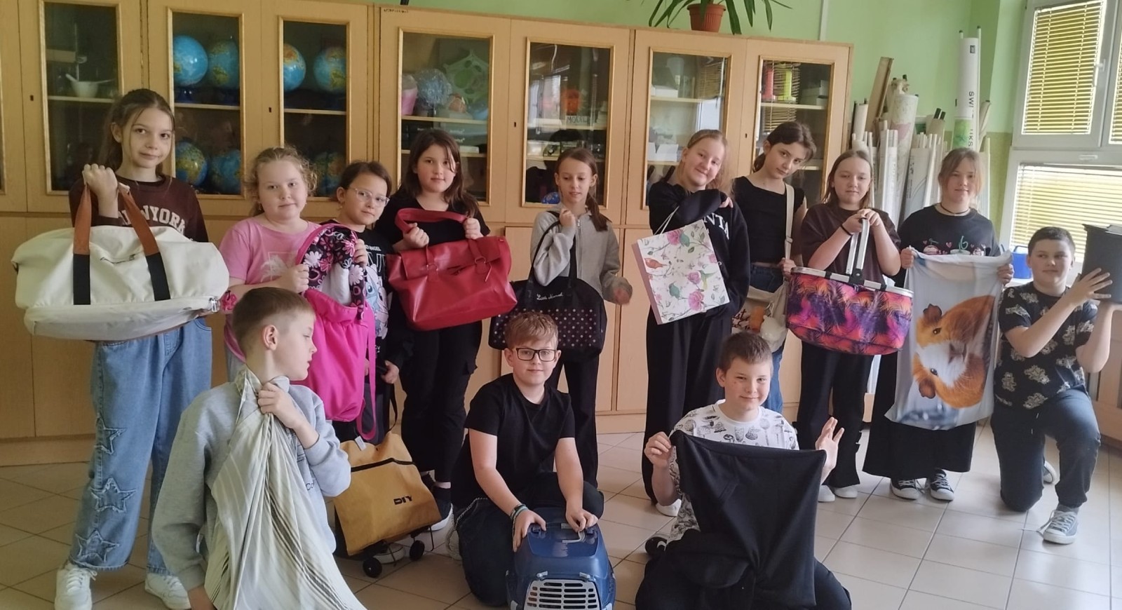 Na szkolnych korytarzach pojawiły się m.in. kosze, wiadra, walizki na kółkach, wózki dla lalek, transportery dla zwierząt, a nawet garnek, pufa czy przenośna lodówka. Kreatywność uczniów nie miała granic.