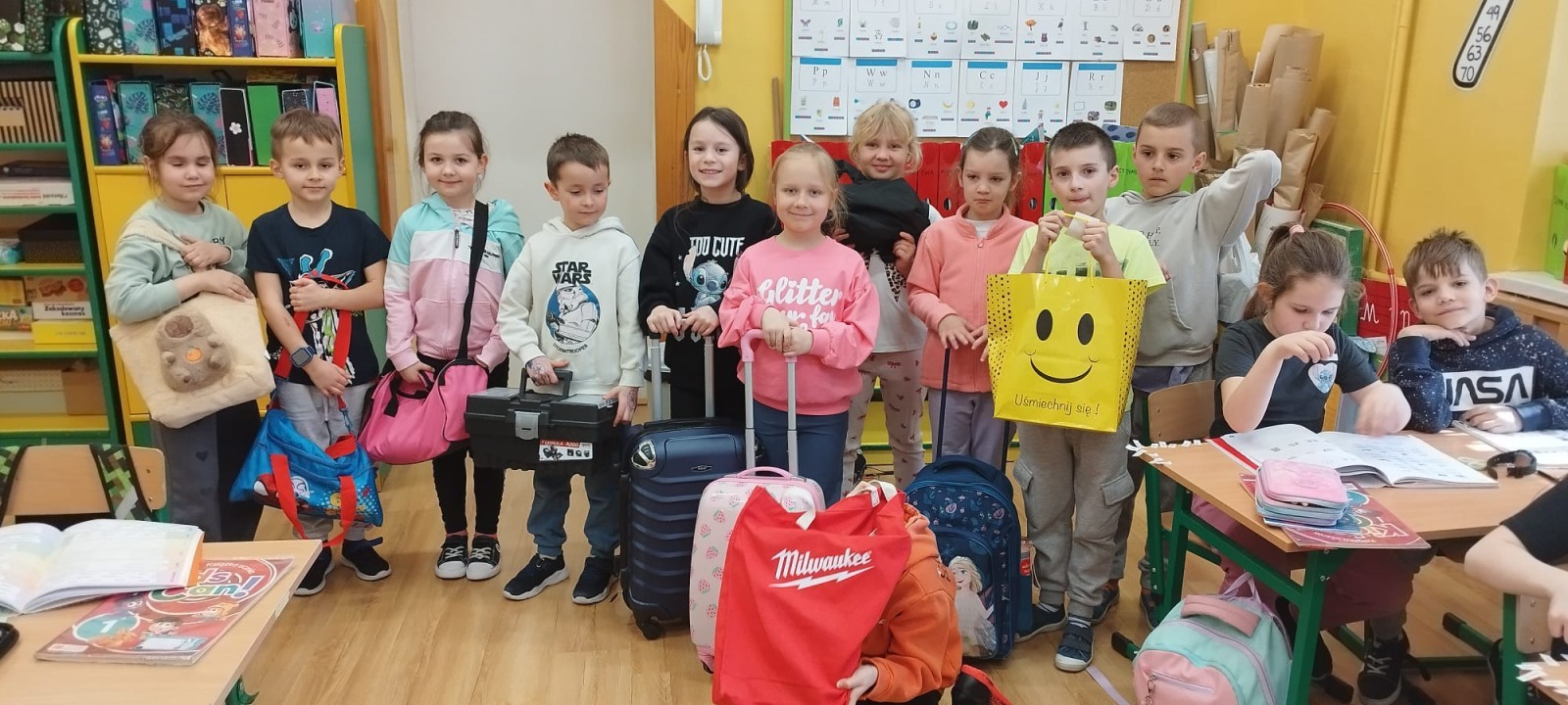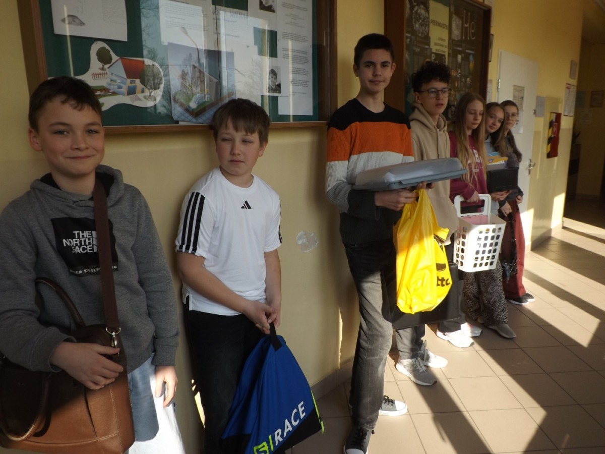 20 marca w naszej szkole obchodziliśmy „Dzień bez plecaka”. Tego dnia uczniowie zrezygnowali z tradycyjnych plecaków, wykazując się dużą pomysłowością w sposobach przynoszenia książek i przyborów szkolnych.
