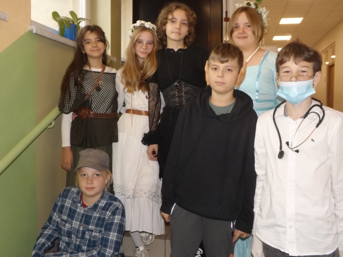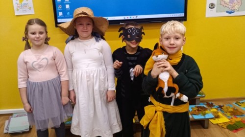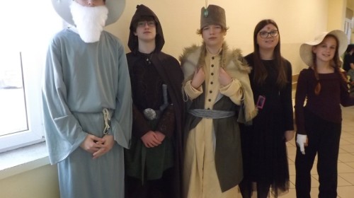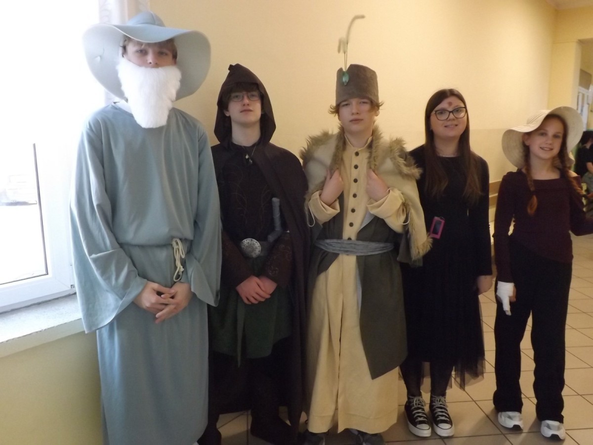 Widać było, że nasi uczniowie znają i czytają lektury, na korytarzach szkolnych można było spotkać wiele postaci, np.: Łucję, Zuzię i Białą Czarownicę z „Opowieści z Narni” , Alicję i Królową Kier z „Alicji z krainy czarów”, Pana Kleksa z uczniami oraz szpakiem Mateuszem z „Akademii Pana Kleksa”, Zosię z „Pana Tadeusza”, Kajka z „Kajko i Kokosz”, Gandalfa i Elfy z „Hobbita”, Balladyna, Posejdona, Mikołajka, Harrego Pottera, Pinokia i Małego Księcia.