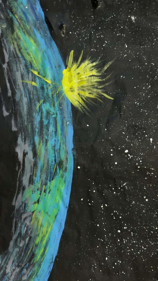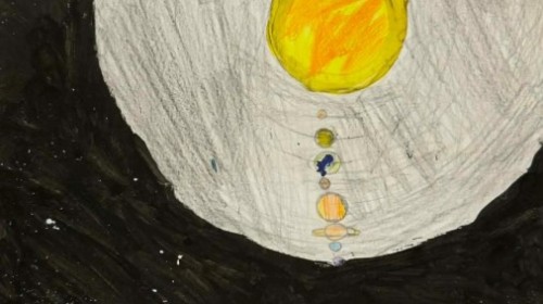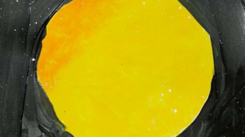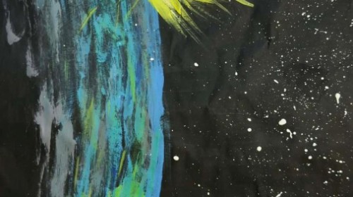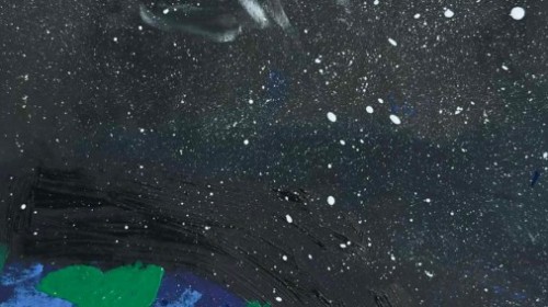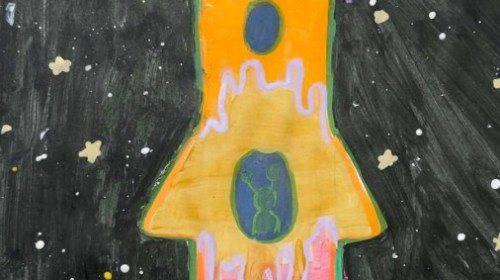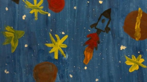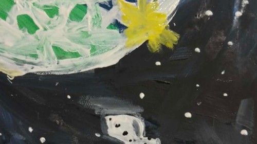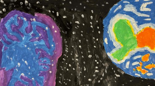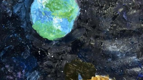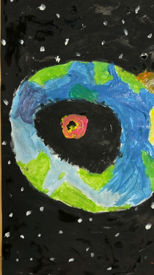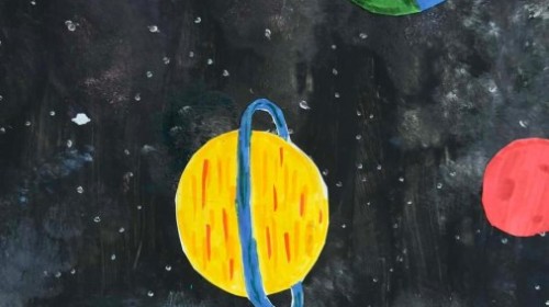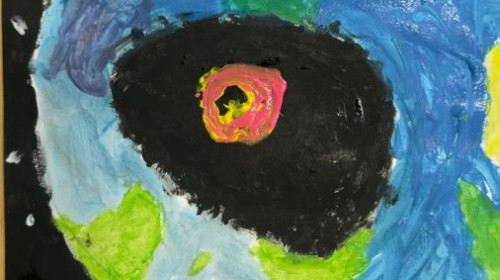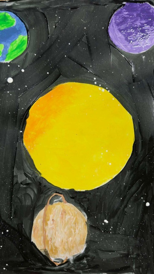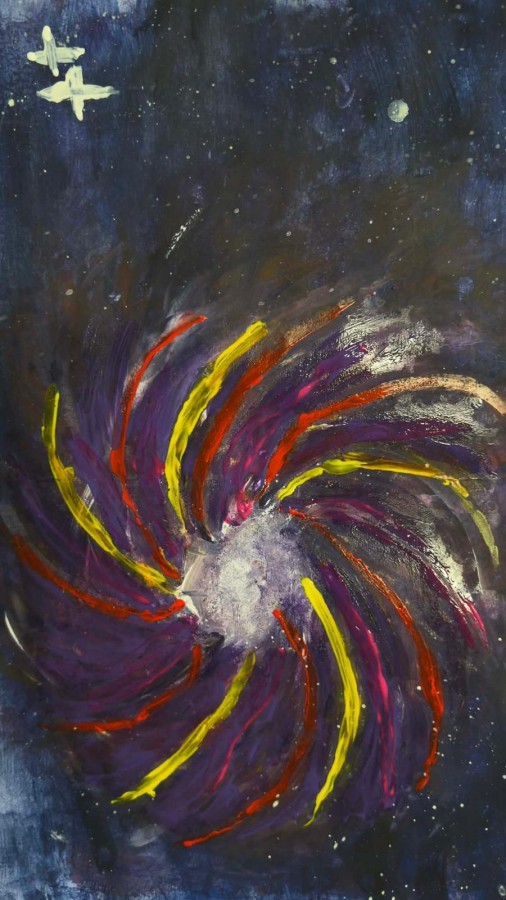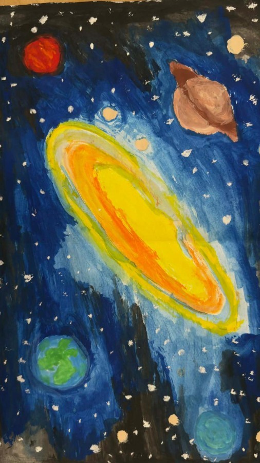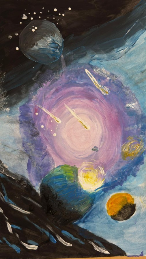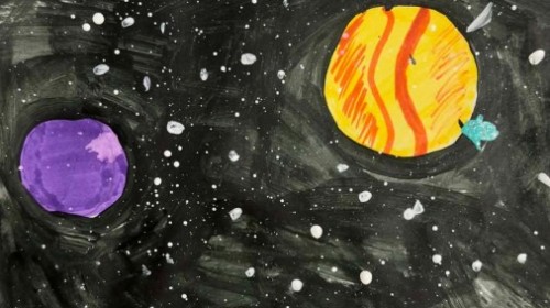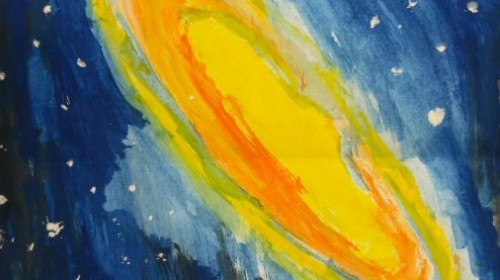 Na lekcji plastyki w klasach piątych uczniowie realizowali temat związany z kosmosem. Ich zadaniem było przedstawienie galaktyki według własnej inwencji twórczej.