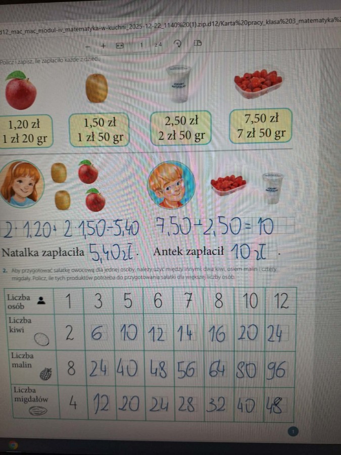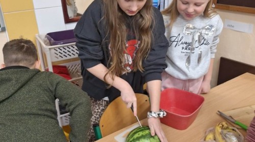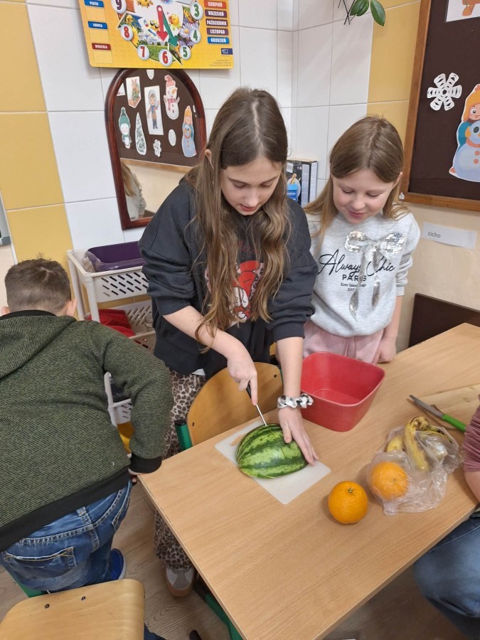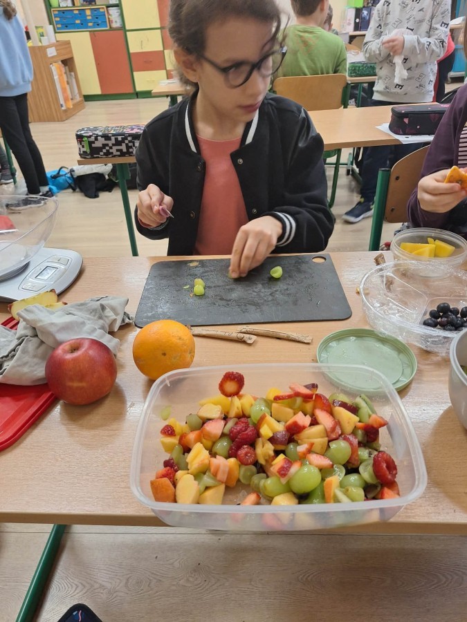 Ostatnim zrealizowanym do tej pory modułem była "Matematyka w kuchni". Głównym zadaniem dzieci było przygotowanie sałatki owocowej z wykorzystaniem umiejętności
