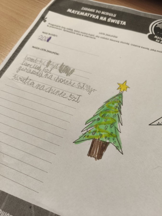 Realizacja modułu „Matematyka na święta” pozwoliła uczniom zastosować wiedzę matematyczną w praktyce poprzez planowanie listy zakupów zgodnie z określonym budżetem, rozwijając umiejętności liczenia oraz podejmowania przemyślanych decyzji.