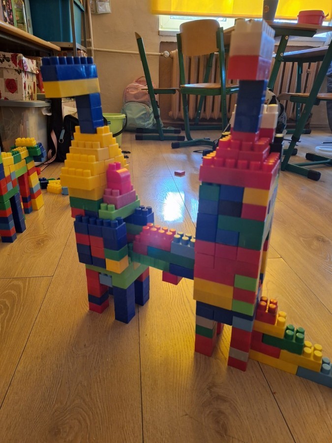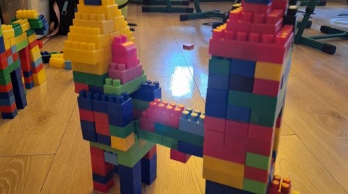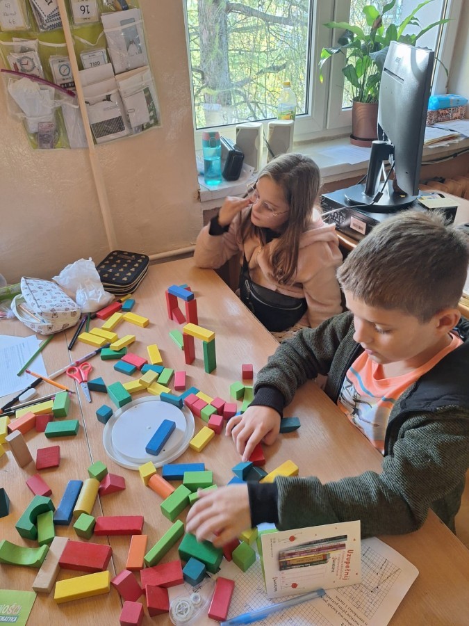 na zakończenie, wykorzystując różnorodne kształty klocków, zaprojektowali własne, kreatywne wersje placów zabaw.