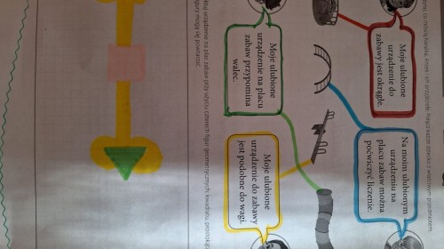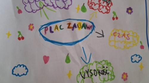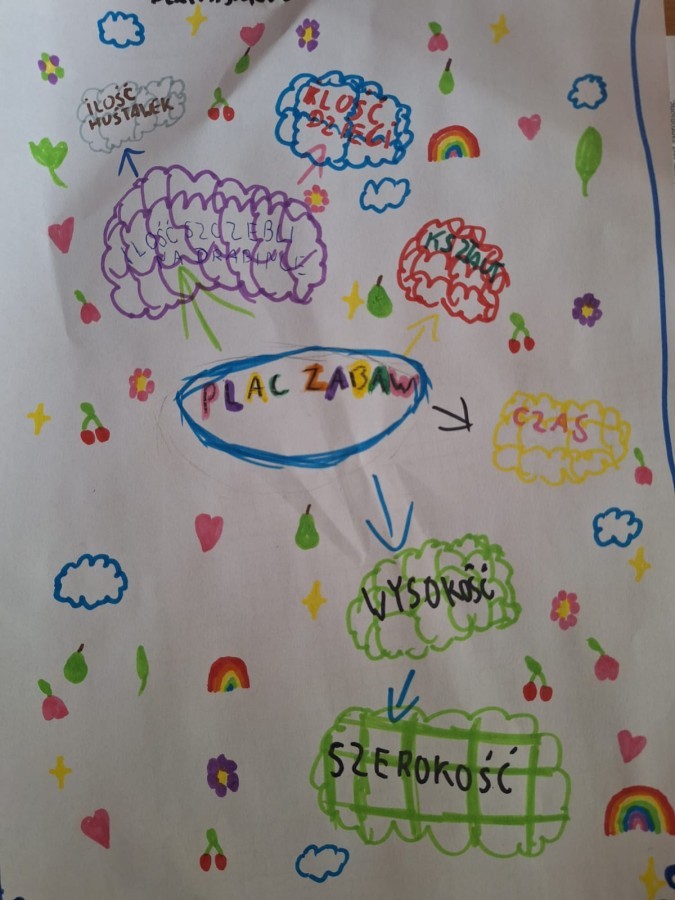 stworzyli mapę myśli, w której zapisali swoje matematyczne obserwacje z placu zabaw,