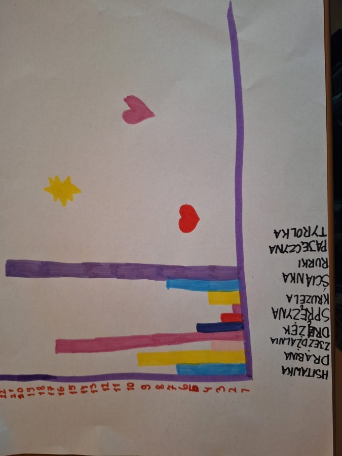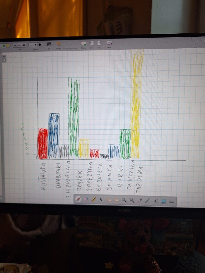 przygotowali wykres słupkowy, prezentujący ulubione urządzenia rekreacyjne w klasie,