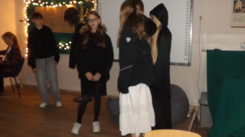 Uczniowie z ogromnym zaangażowaniem wcielili się w swoje role, dbając nie tylko o grę aktorską, ale również o scenografię i oprawę całego wydarzenia.