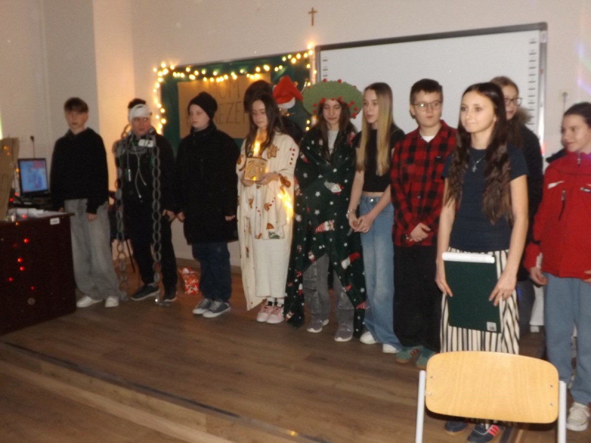 2 lutego uczniowie klas 6 zaprezentowali na scenie „Opowieść wigilijną”. Spektakl był wyjątkowym zwieńczeniem świątecznego czasu oraz okazją do wspólnego przeżywania ponadczasowego przesłania o dobroci, życzliwości i przemianie serca.