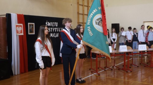 Z okazji rocznicy uchwalenia Konstytucji 3 Maja uczniowie klasy 7c przygotowali uroczysty apel dla społeczności szkolnej.