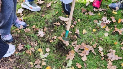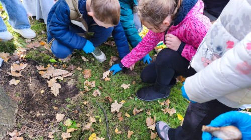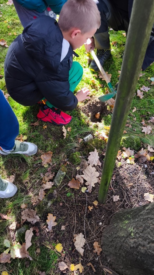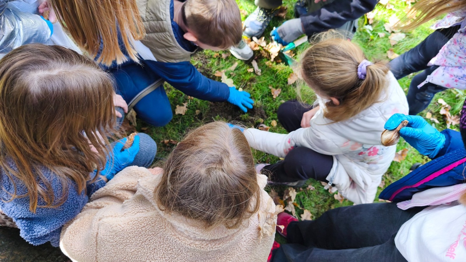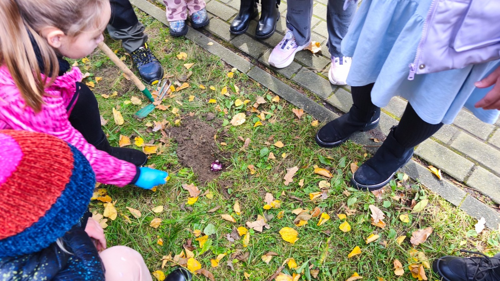 Uczniowie klasy 3c z zaangażowaniem sadzili cebulki kwiatów w szkolnym ogródku. Najwięcej było żonkili, ale pojawiły się też kolorowe hiacynty. Dzieci z zapałem przygotowywały ziemię i sadziły cebulki w wyznaczonych miejscach. Podczas zajęć dowiedziały się, że żonkile są symbolem nadziei w walce z chorobą nowotworową oraz wsparcia dla osób objętych opieką hospicyjną. Rozmawialiśmy także o tym, że dbanie o rośliny i przyrodę to ważny krok w trosce o naszą planetę i ochronę klimatu. Teraz z niecierpliwością czekamy na wiosnę, by zobaczyć efekty swojej pracy.