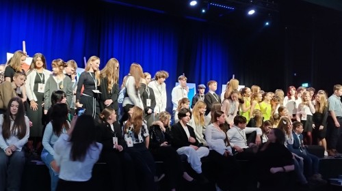 Uczestnicy zostali podzieleni na cztery grupy tematyczne. Nasz samorząd trafił do grupy czerwonej, w której zapisywali na płótnie pomysły, jak pasją można bronić się przed hejtem i uczyli się piosenki.