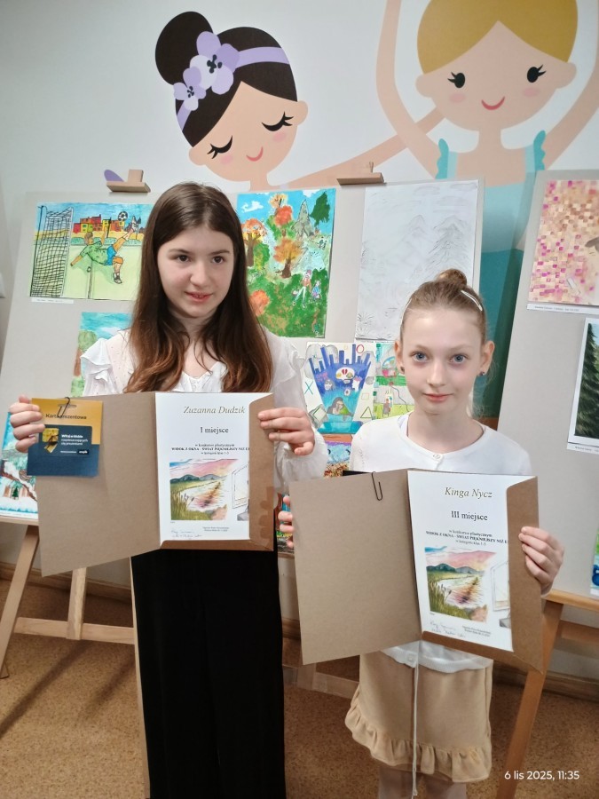 Zuzia Dudzik i Kinga Nycz zostały laureatkami Międzyszkolnego Konkursu „Widok z okna – świat piękniejszy niż ekran”, zorganizowanego przez Ośrodek Pracy Pozaszkolnej w Bielsku-Białej.