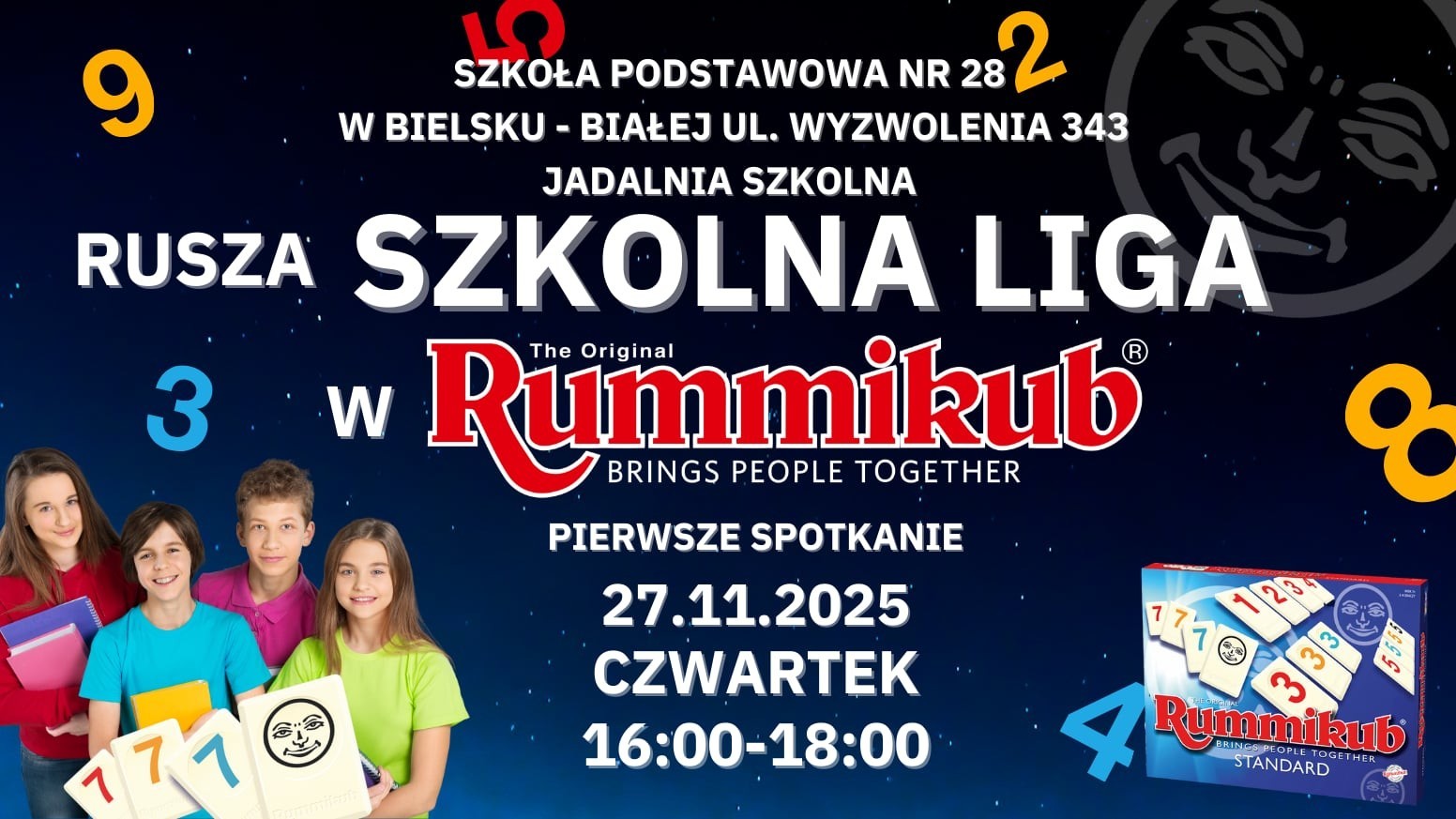 z radością informuję, że w naszej szkole 27 listopada 2025 r. rusza Liga Rummikuba – cykl międzypokoleniowych spotkań dla uczniów, rodziców i dziadków.