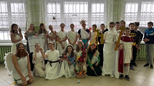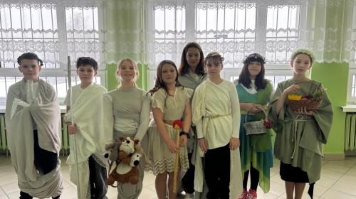 Uczniowie bardzo dobrze wywiązali się z powierzonego zadania. Byli świetnie przygotowani merytorycznie, a ich wystąpienia świadczyły o dobrym zrozumieniu omawianych tekstów. Na szczególne uznanie zasługują również pomysłowe i starannie przygotowane stroje, które doskonale oddawały charakter mitologicznych postaci.