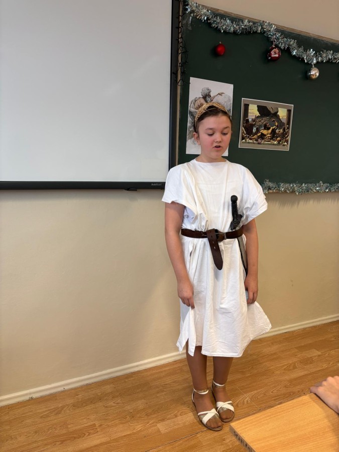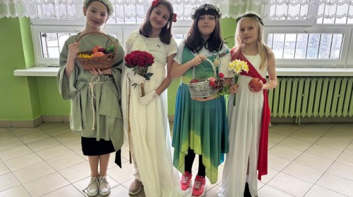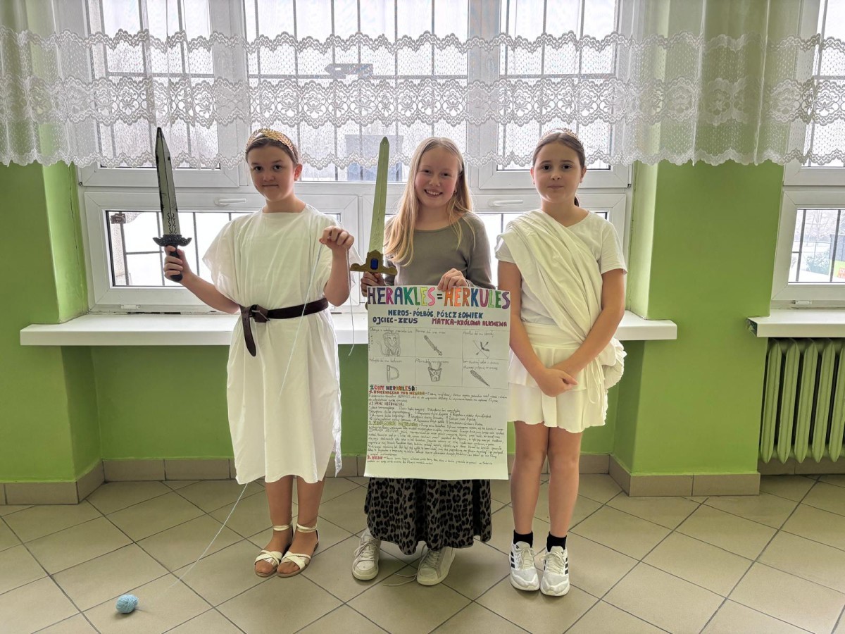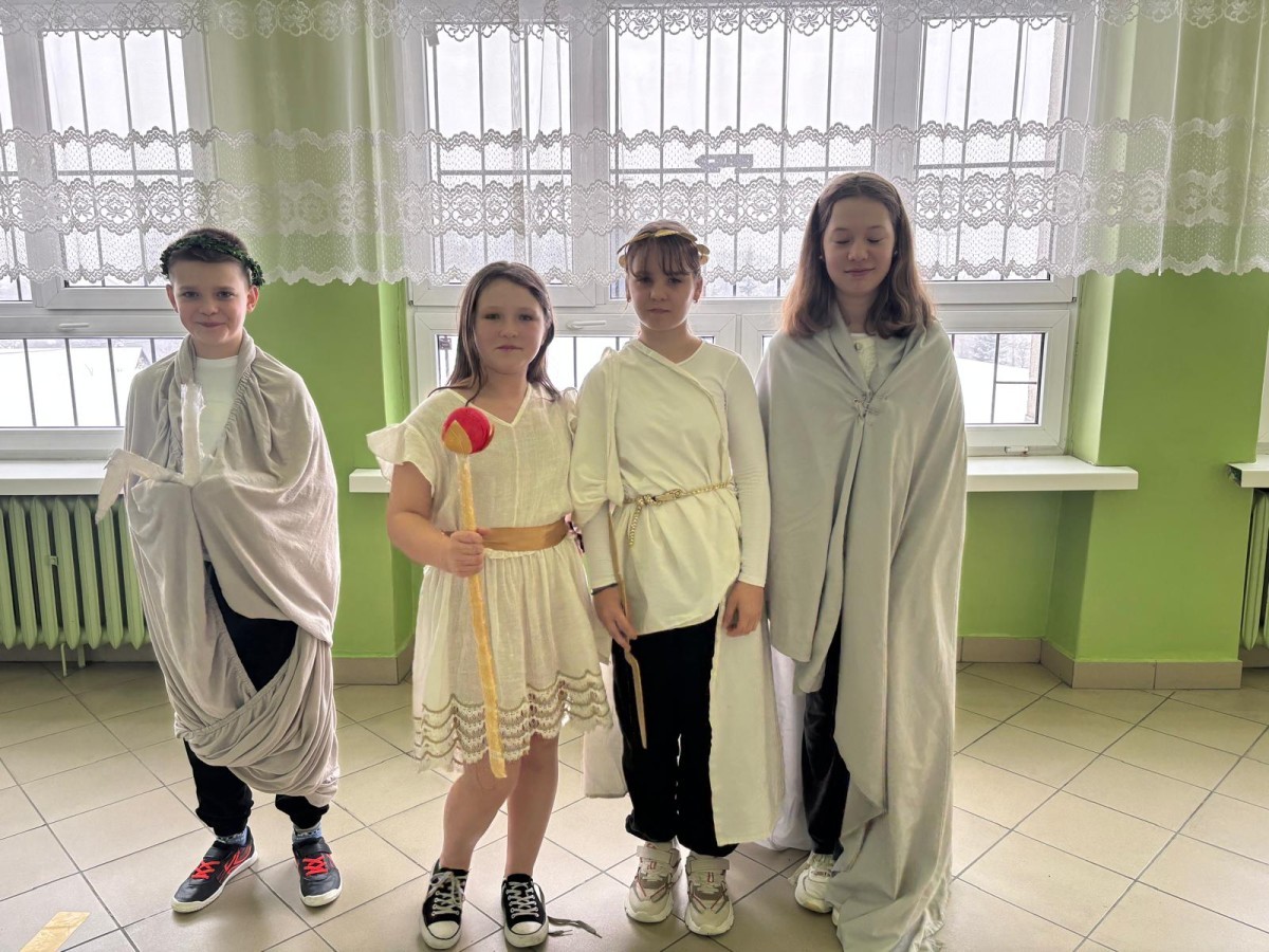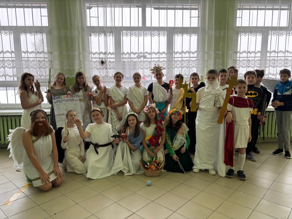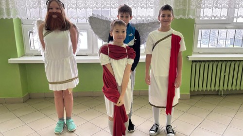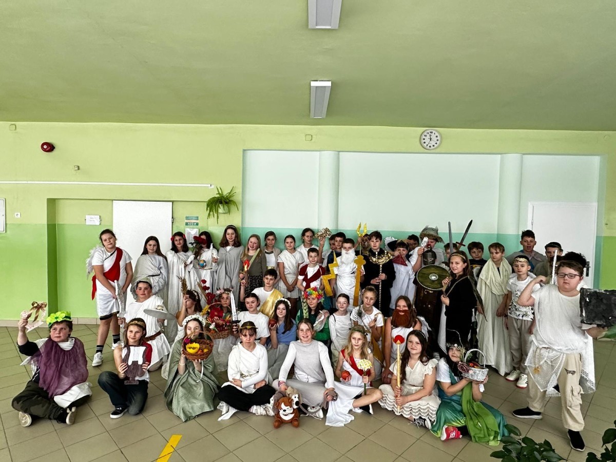 W ramach innowacji polonistycznej „Lektury inaczej – twórcze czytanie i odkrywanie” uczniowie klas 5b i 5c zrealizowali projekt poświęcony mitologii greckiej. Do udziału w wydarzeniu została zaproszona klasa 5a, która miała okazję obejrzeć wystąpienia swoich koleżanek i kolegów.