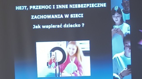 Podczas spotkania rodzice mieli okazję dowiedzieć się, jak rozpoznawać symptomy hejtu i cyberprzemocy, jak reagować, gdy dziecko doświadcza agresji słownej w sieci, a także jak budować w domu atmosferę bezpieczeństwa, zaufania i dialogu. Pan Rychły podkreślał, że kluczową rolę w przeciwdziałaniu przemocy odgrywa świadoma obecność rodzica – rozmowa, zainteresowanie światem dziecka oraz wspólne ustalanie zasad korzystania z mediów cyfrowych.