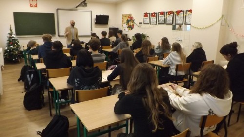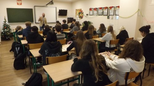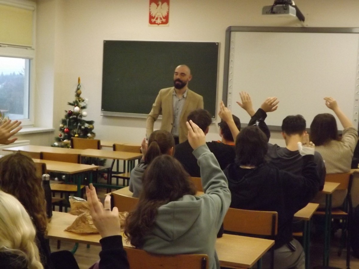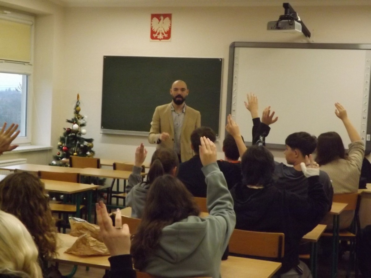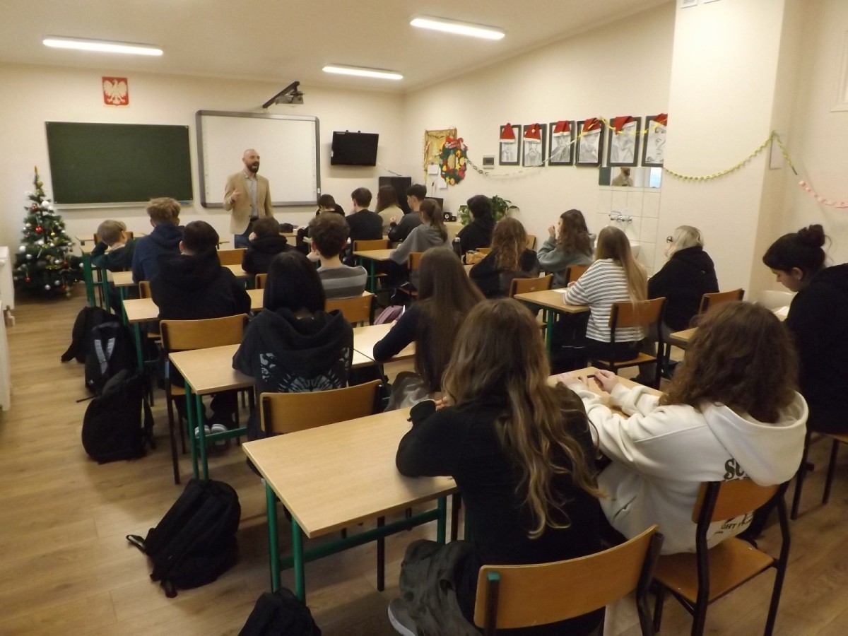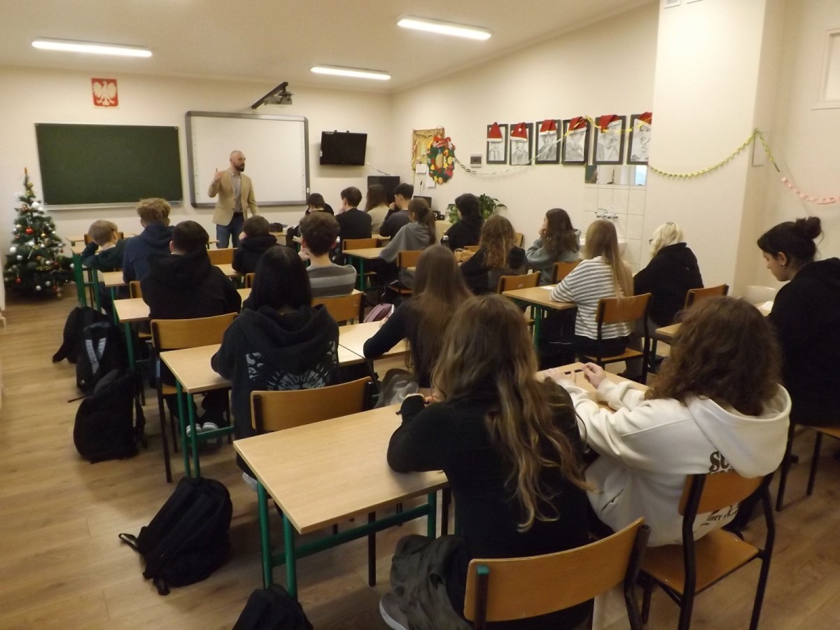 W grudniu odbyły się w szkole cykliczne działania profilaktyczne. Przeprowadzono warsztaty w 11 klasach. Uczestnikami zajęć byli uczniowie klas VI, VII i VIII. W przedsięwzięciu wzięło udział 225 uczniów. Zajęcia odbywały się w dniach: 5,8,9,10,11 grudnia 2025 roku. Profilaktyczne warsztaty klasowe dotyczyły ważnej problematyki obejmującej współczesnych środków psychoaktywne. Nasza szkoła skorzystała z Rekomendowanego Program Profilaktycznego Debata. Tematem wiodącym spotkań był: „Alkohol, narkotyki, dopalacze a czynniki chroniące”. Wybór tematu Programu Debata był zgodny z zapisami Programu Wychowawczo Profilaktycznego na rok szkolny 2025/2026. Odpowiadał tym samym na oczekiwania rodziców deklarowane w przeprowadzonej wcześniej ankiecie. Realizatorem programu był Pan Paweł Czyż, trener Śląskiego Centrum Profilaktyki i Psychoterapii w Katowicach. Zajęcia cieszyły się dużym zainteresowaniem uczniów.