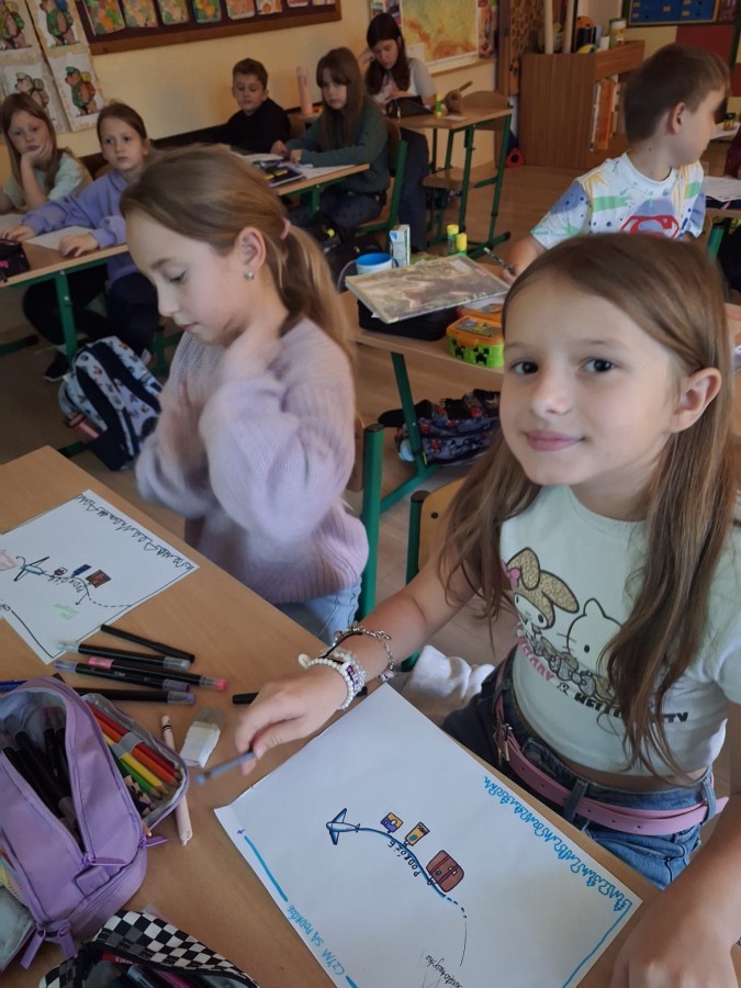Uczniowie klasy 3b uczestniczyli w wyjątkowej lekcji prowadzonej przez panią Sabinę Piłat w ramach projektu edukacyjnego „Wirtualne podróże”. Zajęcia miały na celu rozbudzenie ciekawości świata oraz refleksję nad tym, czym są podróże — nie tylko w sensie geograficznym, ale także poznawczym i kulturowym. Dzieci zastanawiały się, dlaczego ludzie podróżują, co można dzięki temu odkryć i jak różnorodne mogą być środki transportu.
