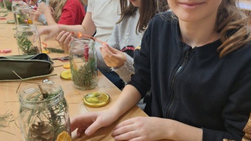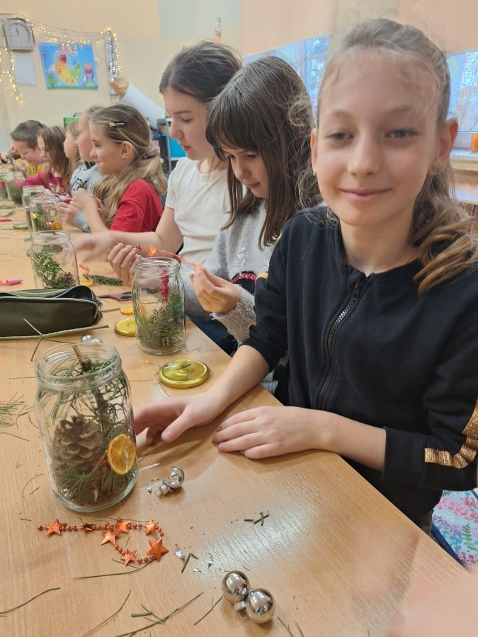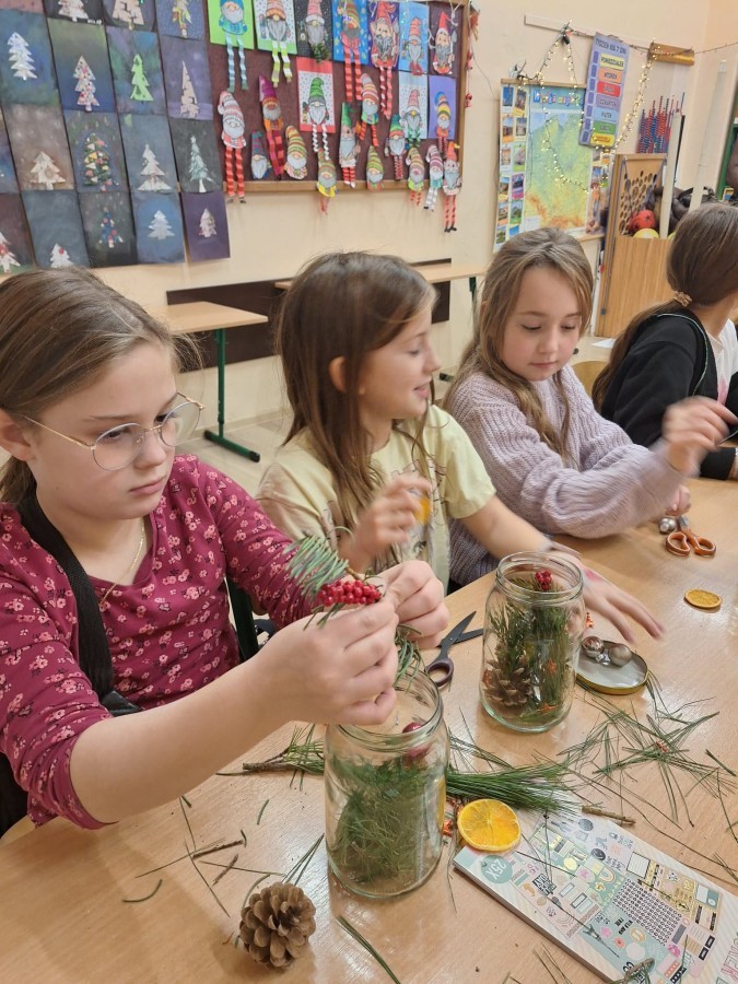 Realizując II moduł „Tu jest moje miejsce”, uczniowie uczestniczyli w warsztatach, podczas których tworzyli bożonarodzeniowe ozdoby – świąteczne słoiki. W ramach edukacji informatycznej dzieci wyszukiwały w sieci informacje o ciekawych miejscach w Bielsku-Białej, tworząc krótkie notatki w zadaniu „To warto zobaczyć”, co sprzyjało poznawaniu najbliższej okolicy i budowaniu tożsamości regionalnej.